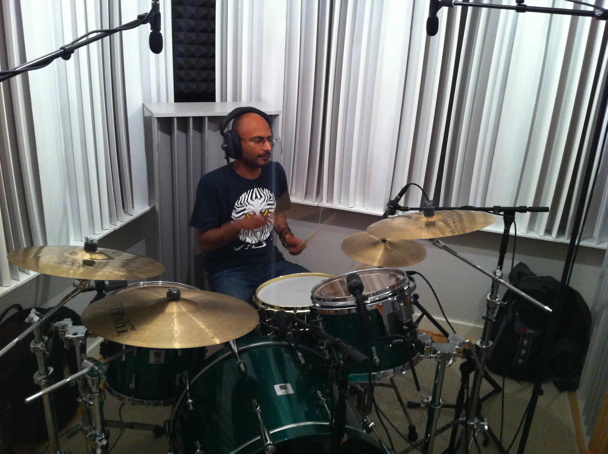 Awakening Band’s trummis, inspelningsrum 2 hos Studio Västerås